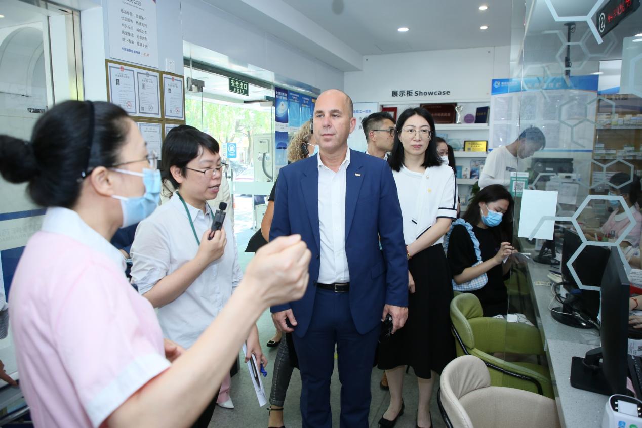 签约会议前,Mark Sabag副总裁一行实地走访了英特怡年清吟街店,详细了解英特DTP药房服务模式和流程。