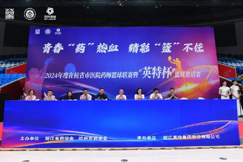 青春“药”热血,精彩“篮”不住。6月16日,由浙江省药学会、杭州市药学会主办,英特集团承办的2024年度在杭省市医院药师篮球联赛暨“英特杯”篮球邀请赛开幕式在杭州体育馆隆重举行。浙江省药学会副理事长兼秘书长王志安、副秘书长王建平,杭州市药学会副理事长兼秘书长王刚,在杭省市医院药剂科负责人,英特集团总经理汪洋,党委副书记、工会主席李晓光等领导出席。活动得到了浙大一院、浙大二院、市一医院等在杭医院的积极响应,来自近20家医院的157名药师球员参赛。